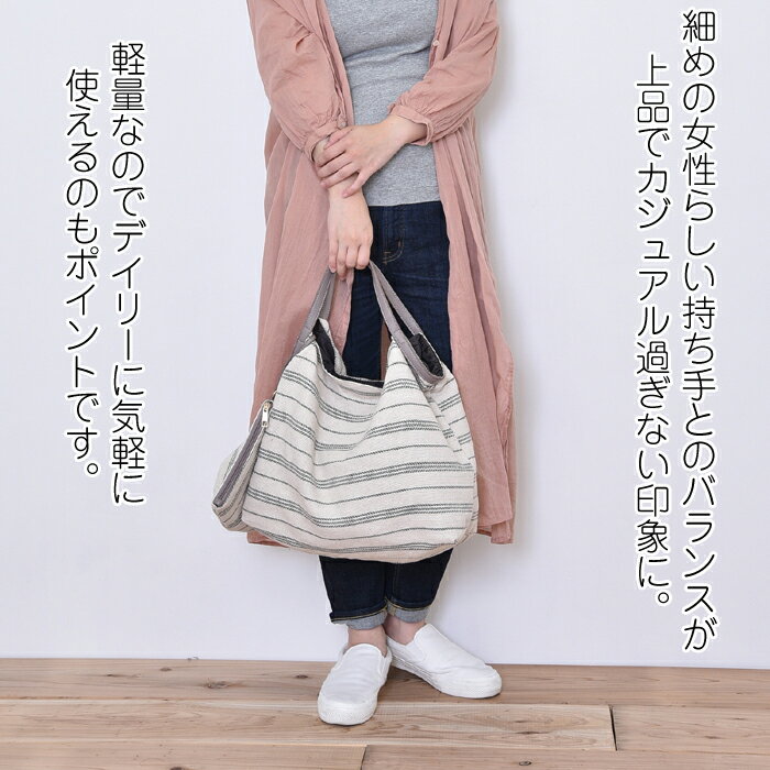 口開きが大きく、手荷物の他、ストールや羽織ものなどもラフに収納できます。