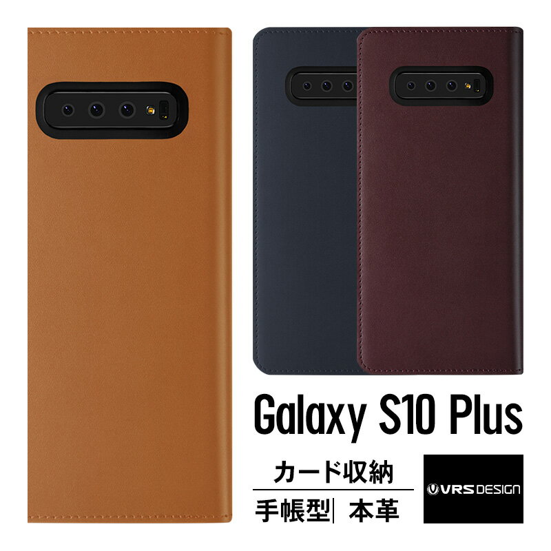 Galaxy S10+ ケース 手帳型 本革 ベルト なし マグネット なし 高級 ハンドメイド 手帳型ケース カード 収納 ポケット 付 スマホケース Qi ワイヤレス 充電 対応 Galaxy S10+ S10Plus ギャラクシーS10プラス VRS DESIGN Genuine Leather お取り寄せ